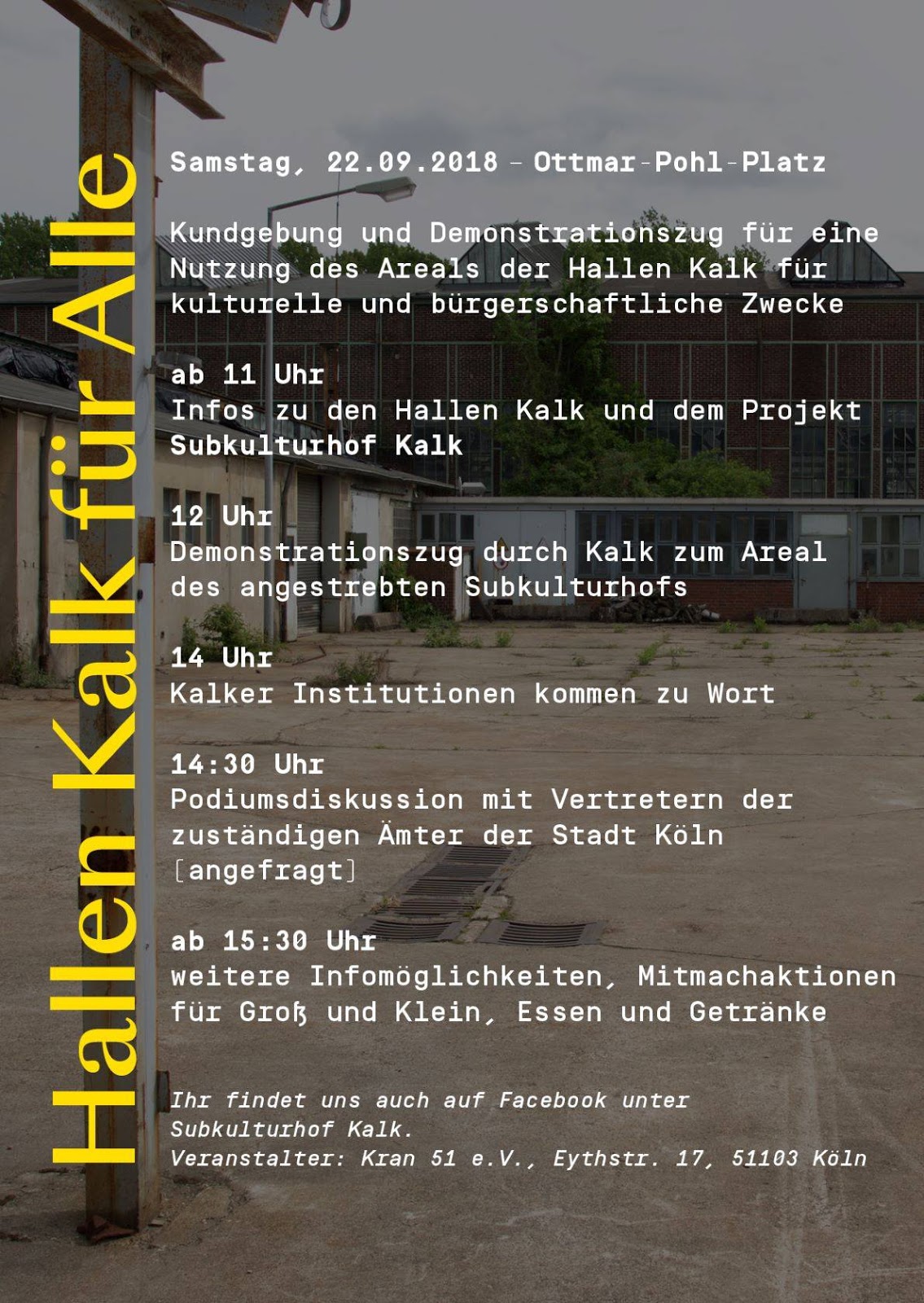 Samstag, den 2. Juli ab 17h in die Baustelle Kalk und ab